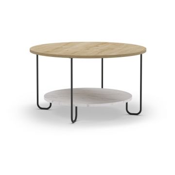 Măsuță de cafea în culoare naturală rotundă cu aspect de lemn de stejar ø 80 cm Lua – MOME