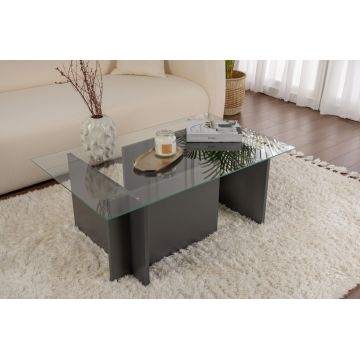 Set masute de cafea, Cerritos, Black-Grey-80-60, Sticla temperata, Negru