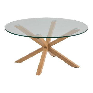 Măsuță de cafea în culoare naturală cu blat din sticlă 80x80 cm Randolf – Actona