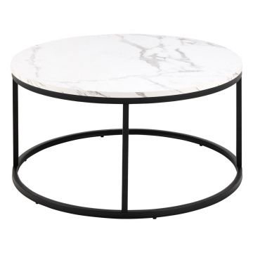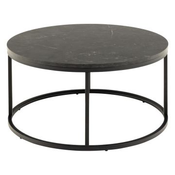 Măsuță de cafea neagră rotundă cu blat cu aspect de marmură ø 80 cm Wyre – Actona