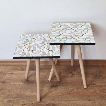 Set masute 2 piese, Leona, 2Shp106, MDF , Alb / Auriu / Maro
