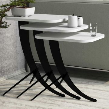 Set masute 3 piese, Hommy Craft, Stil Metal Ferforje, PAL, Alb/Negru